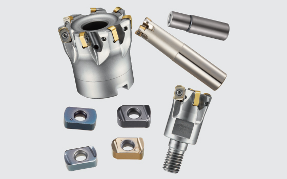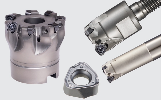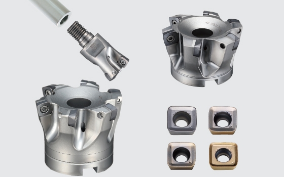 Lineup includes 09 types of square positive inserts with 4 corners on one side. Highly efficient machining of hard-to-cut materials such as heat-resistant alloys and titanium alloys.